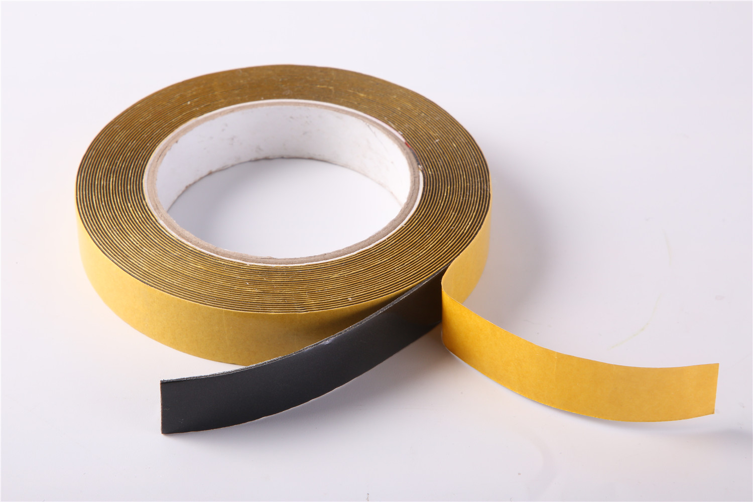 PVC foam tape is s made by 300-400kg/m3 density PVC foam. The foam sealant combines a closed-cell polyvinyl chloride foam substrate with a pressure-sensitive adhesive on both sides.